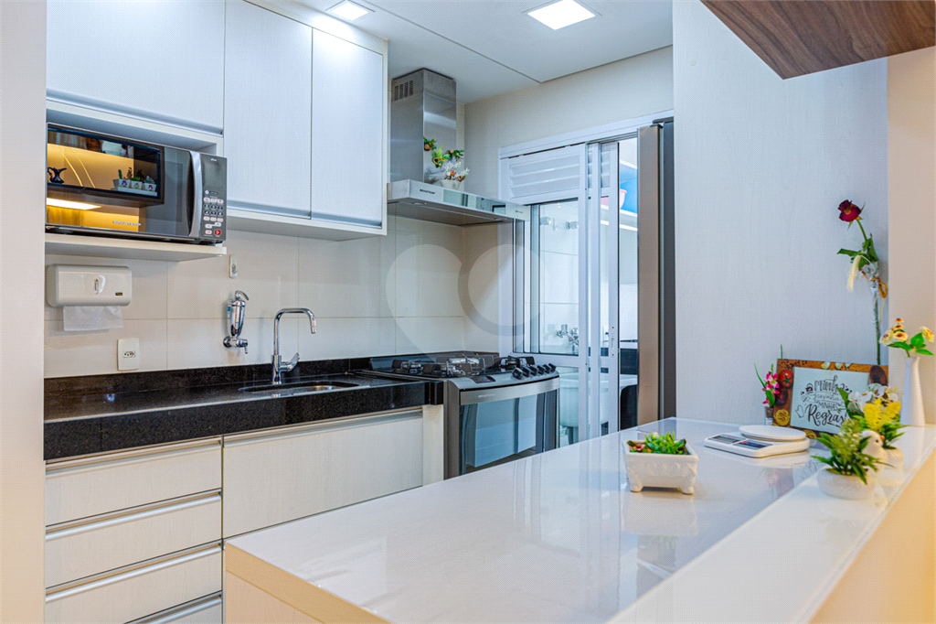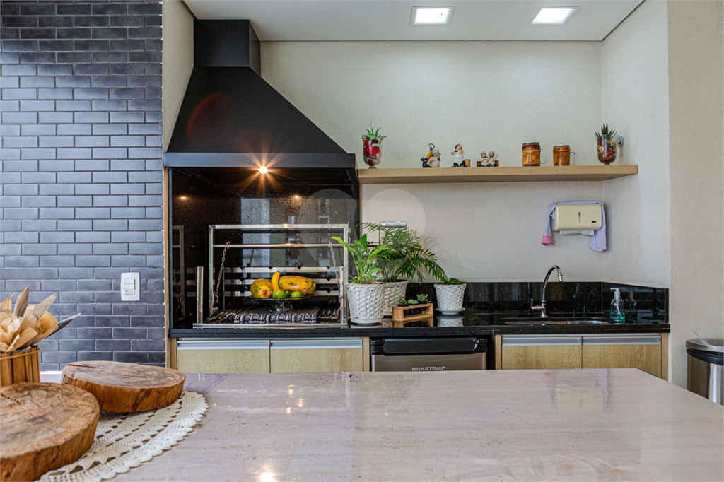 A cozinha americana, moderna e funcional, é repleta de armários planejados, oferecendo excelente aproveitamento de espaço. A área de serviço também conta com marcenaria planejada, trazendo praticidade ao dia a dia.