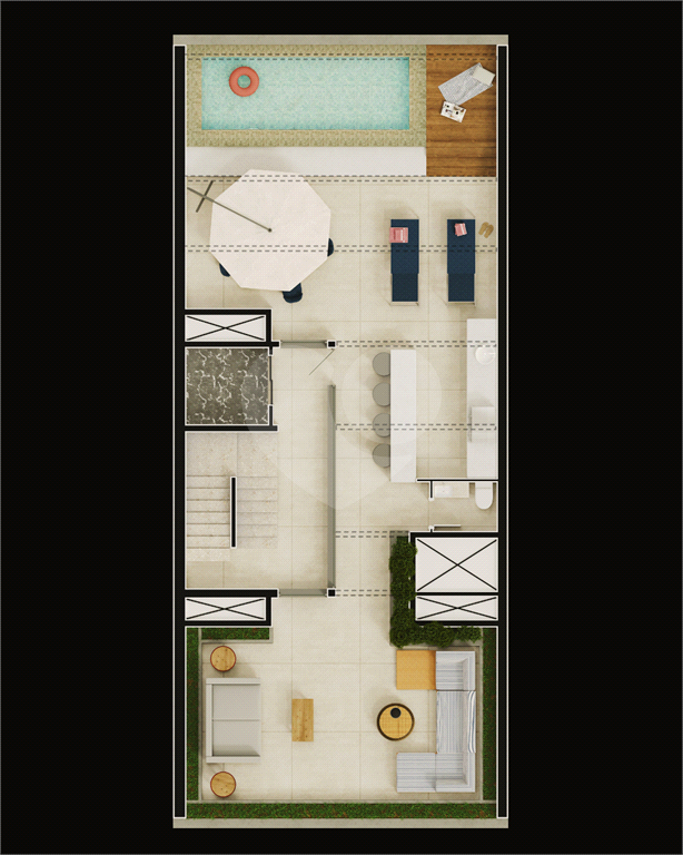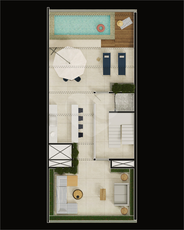 Água quente, Aquecimento central, Área de serviço, Banheiro de serviço, Churrasqueira, Closet, Dependência de funcionário, Depósito, Espaço gourmet, Gás encanado, Hall privativo, Infraestrutura para ar-condicionado, Interfone, Jardim, Lavabo, Piscina, Vista panorâmica.