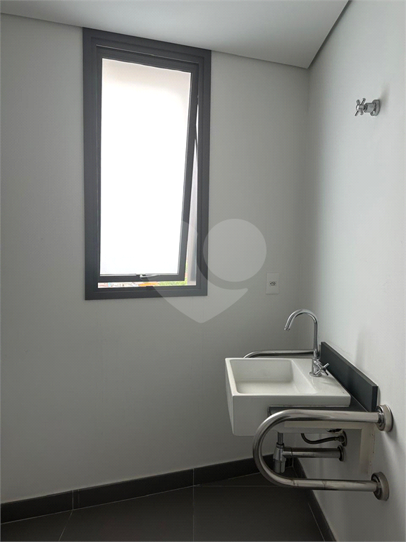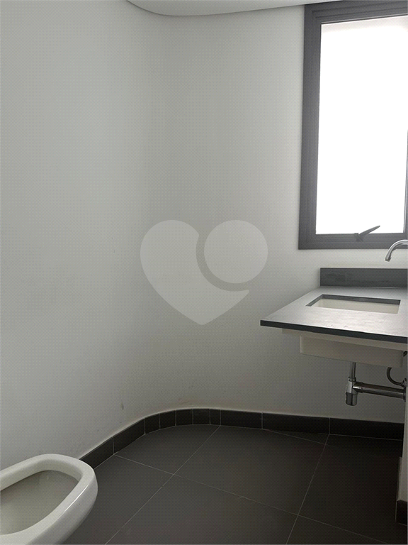 A sala tem 5 banheiros e 4 vagas de garagem, ampla e iluminada.