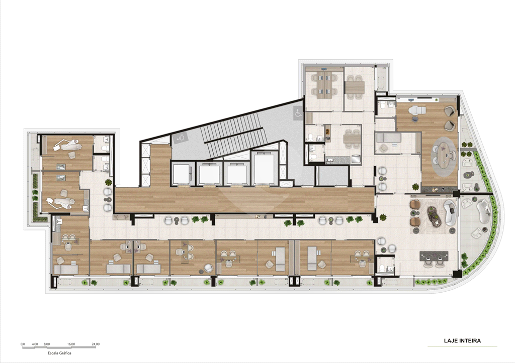 - Previsão para piso elevado, forro termoacústico e ar-condicionado individual