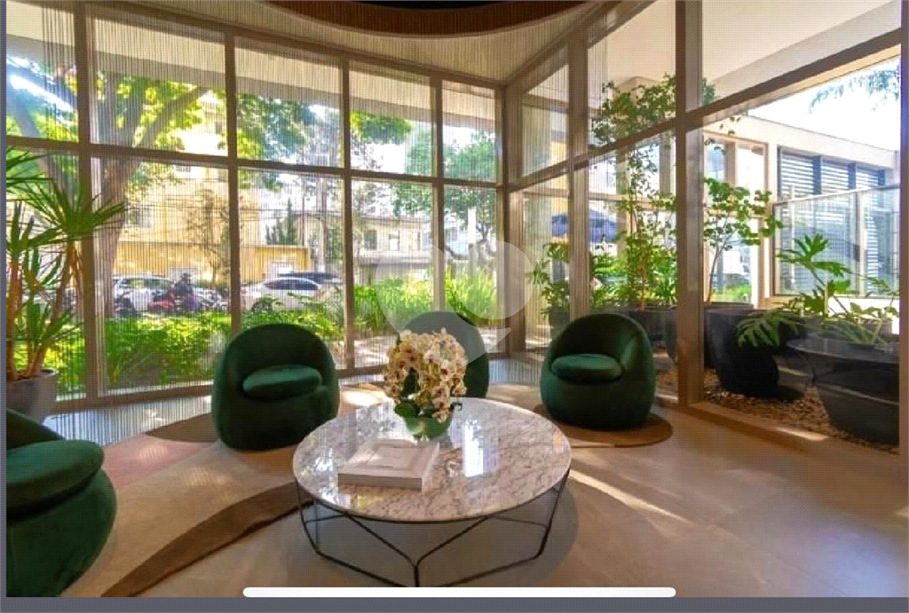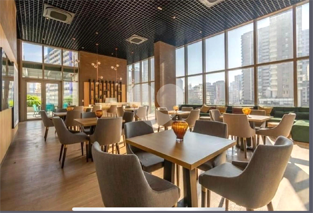 Sala ampla com fechamento em vidro, proporcionando luz natural e uma vista panorâmica inspiradora da cidade.