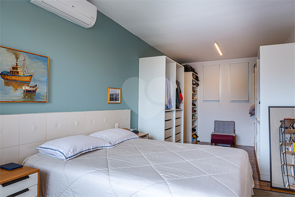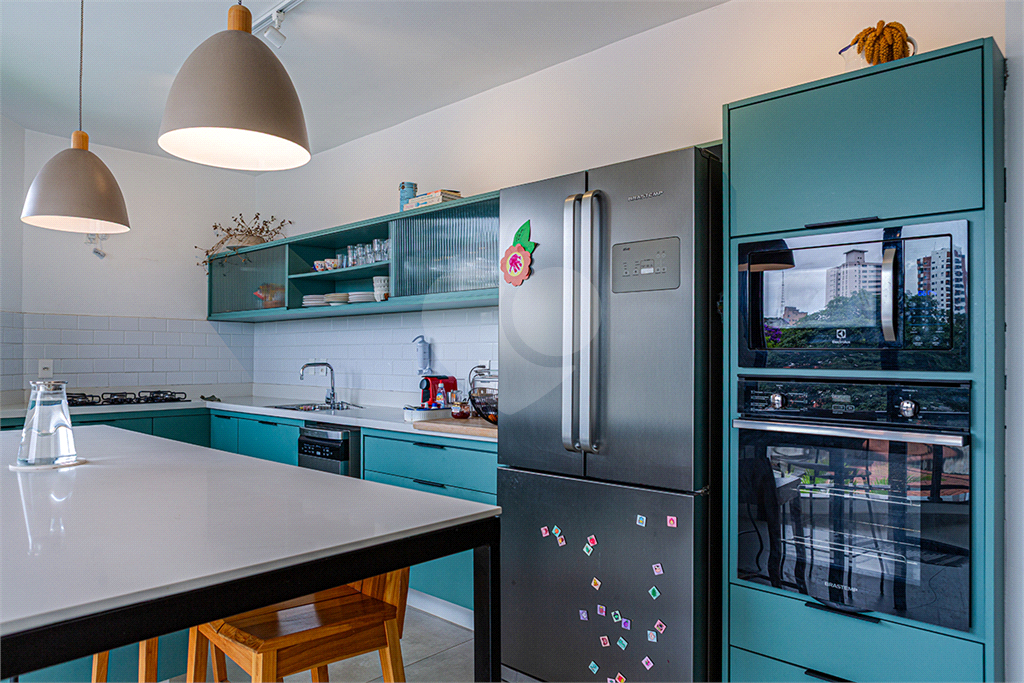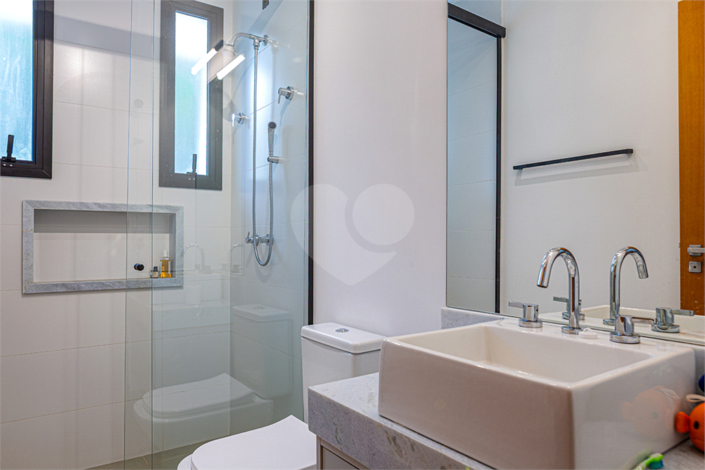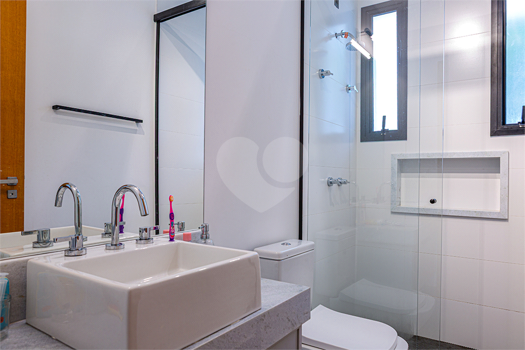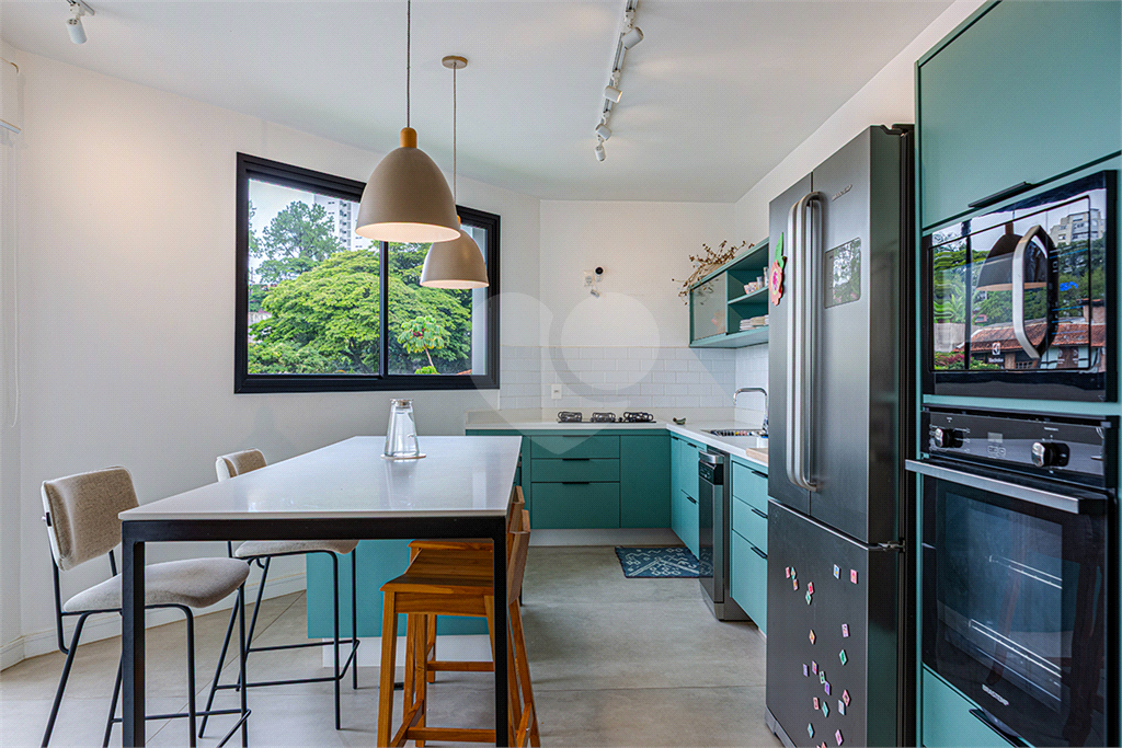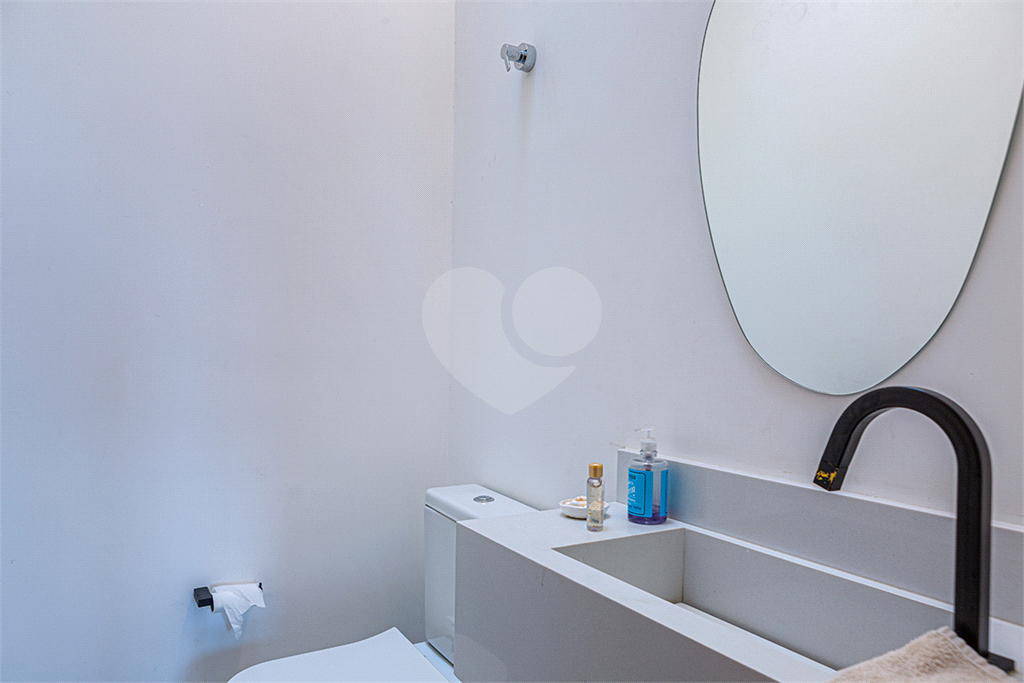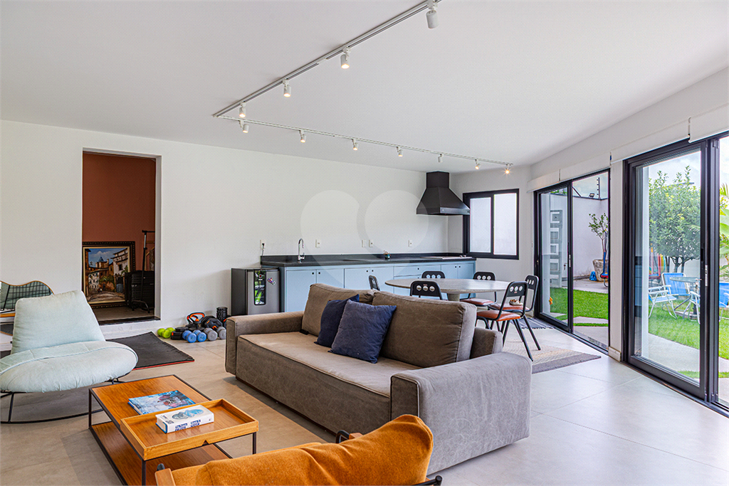 No pavimento principal em nível da rua, os ambientes sociais contam sala de estar, sala de jantar, lavabo, varanda integrada e cozinha com despensa, todos climatizados. Na área íntima conta com três suítes, sendo a suíte principal com closet, com muito conforto e privacidade. No pavimento inferior com acesso ao jardim com muito verde, tem um amplo salão coberto que possui área Gourmet, sala de estar, escritório, academia e lavabo, criando inúmeras possibilidades de uso. Garagem com quatro vagas, área de serviços e dependências de funcionários completa.