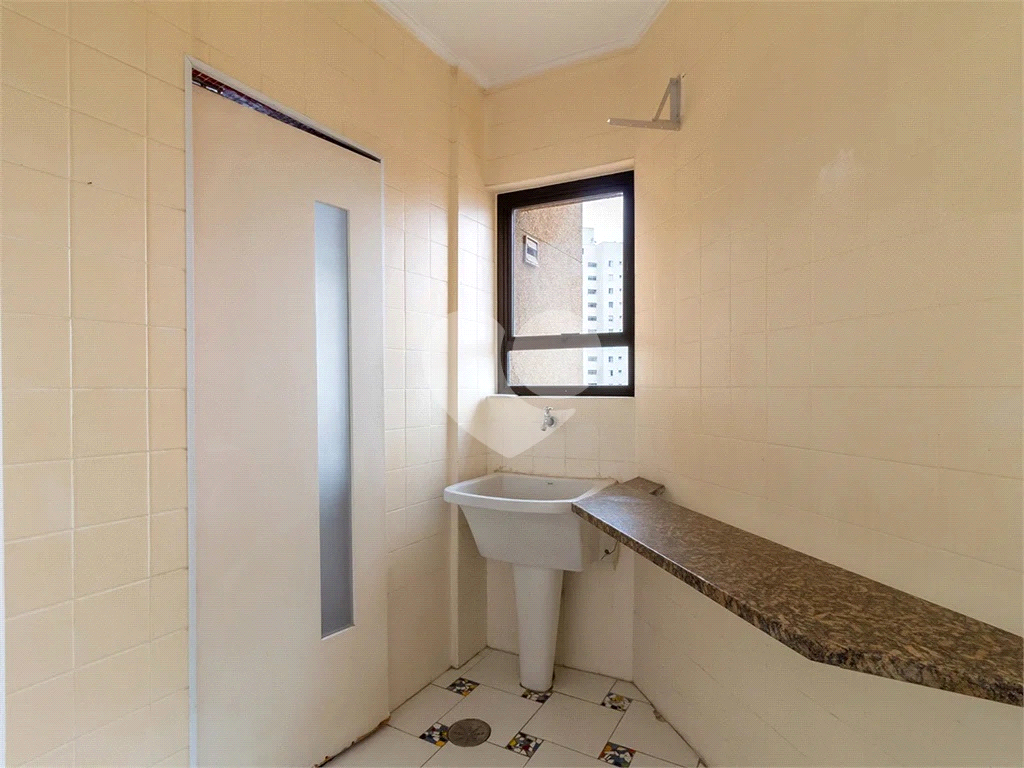 Cozinha com móveis planejados, área de serviço clara e arejada, aquecedor à gás.