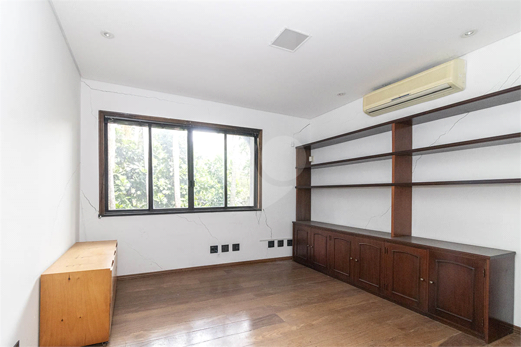 São 4 suítes espaçosas, 7 banheiros, dependências de empregados completas e 8 vagas de garagem — uma raridade absoluta para este microterritório nobre da capital paulistana. Cada cômodo respira amplitude, iluminação natural abundante e o silêncio privilegiado de uma praça que serve de jardim particular.
