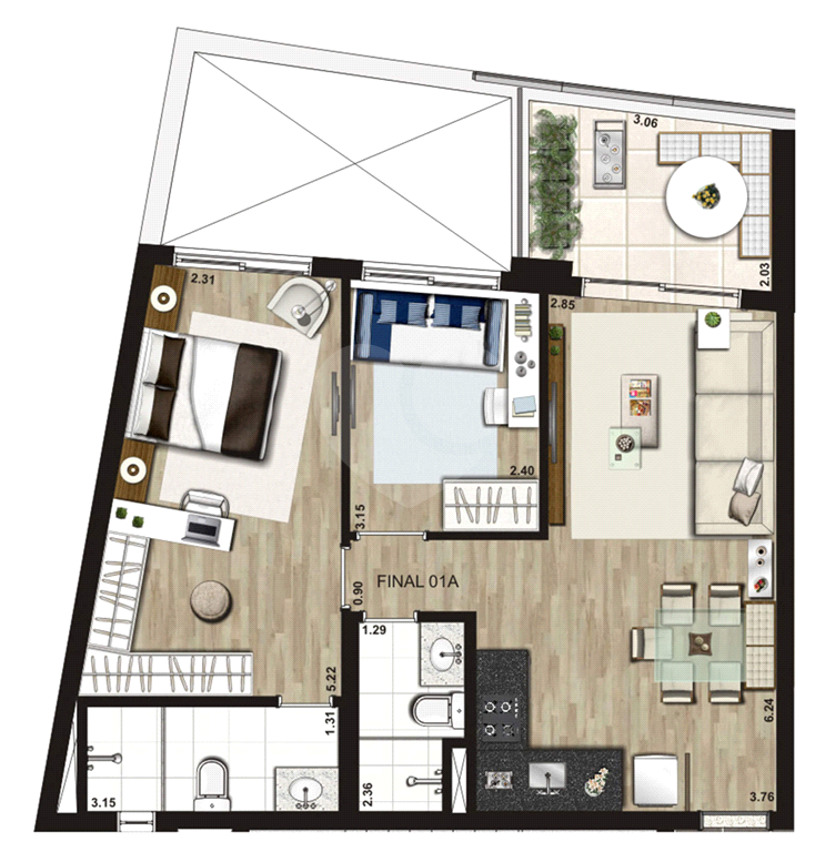 Com 2 quartos, 2 banheiros e 1 lavabo, o -cuidadosamente planejada para proporcionar a máxima funcionalidade e fluidez entre seus ambientes integrados. Os armários embutidos e na cozinha oferecem abundância de espaço de armazenamento, enquanto as varandas proporcionam uma vista incrível da cidade.