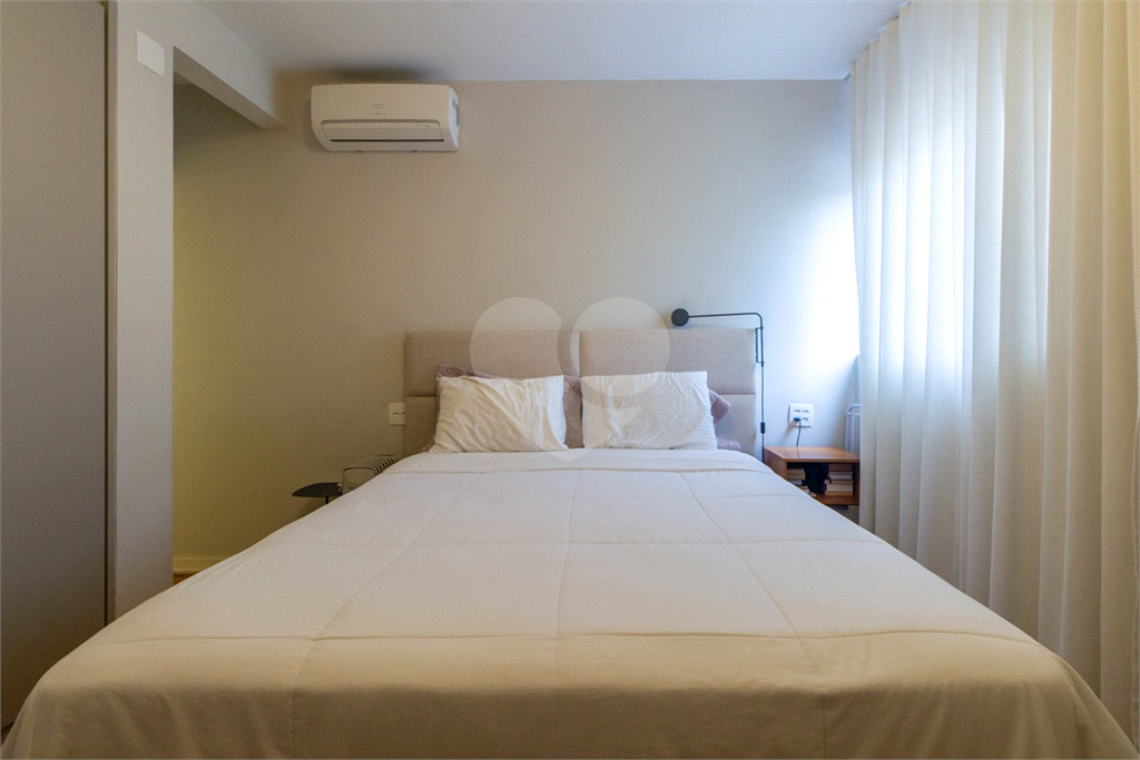 O apartamento reformado apresenta uma integração elegante entre a cozinha e a sala, com destaque para o ar condicionado, pé direito alto e dois dormitórios aconchegantes, todos equipados com armários. As janelas grandes proporcionam excelente ventilação e iluminação natural. Tem quarto e banheiro de serviço.
