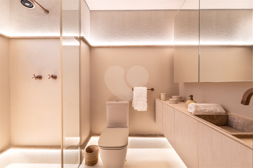 Banheiros com ponto para misturador, desembaçador de espelho e aquecedor de toalhas