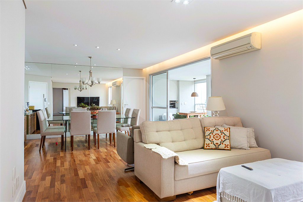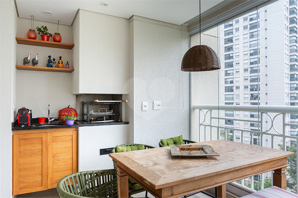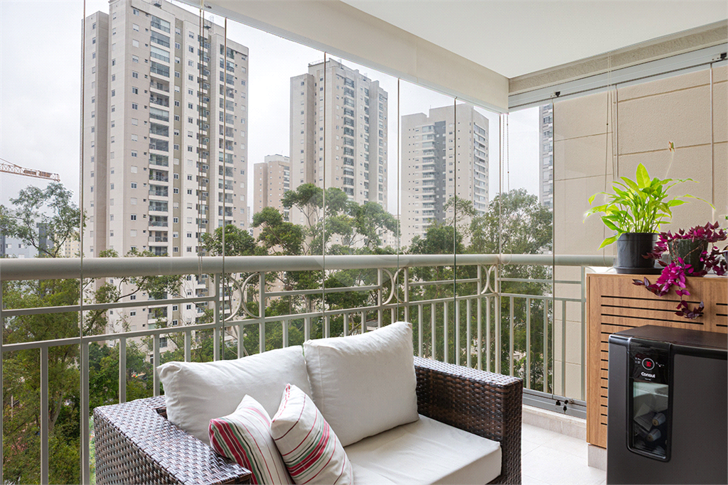 A varanda gourmet conta com churrasqueira e persianas. Ar-condicionado na sala e nos quartos.