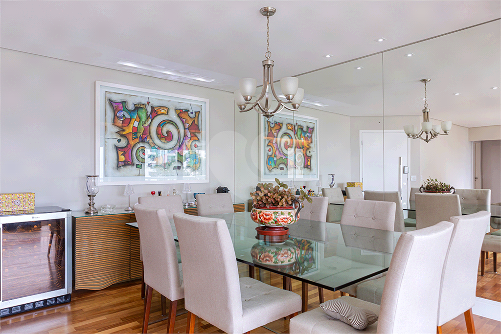 São 3 suítes, lavabo, sala para dois ambientes integrada à varanda gourmet envidraçada, cozinha planejada, área de serviço também com armários e dependências completas para empregados.