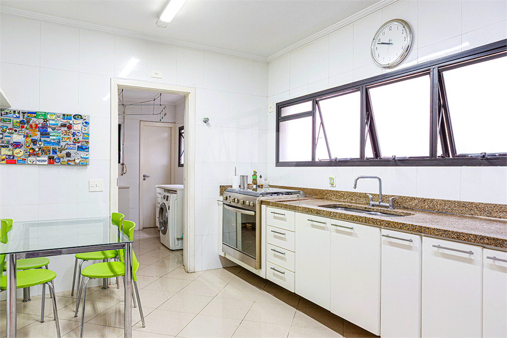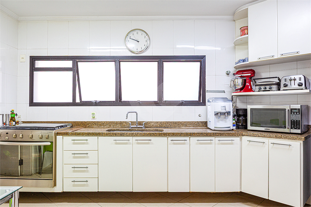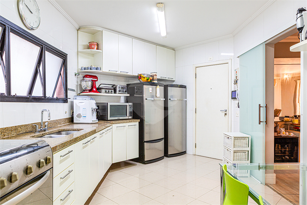 A cozinha é muito ampla, perfeita para quem valoriza funcionalidade e espaço no dia a dia. Dispõe de duas vagas de garagem e depósitos privativos, oferecendo mais comodidade e organização.