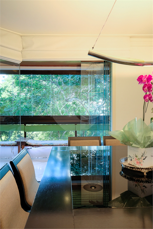 Na área social, um amplo living envidraçado com vista verde e uma deliciosa luminosidade natural filtrada pelas árvores, criando uma atmosfera mágica em certas horas do dia. A varanda gourmet circunda toda a área social com acessos separados para a sala de estar, sala de jantar e sala de almoço. Estrategicamente situada no ponto mais distante da sala de estar, a área da churrasqueira conta com um passa prato para a cozinha. Um lavabo próximo à entrada principal completa a área social.