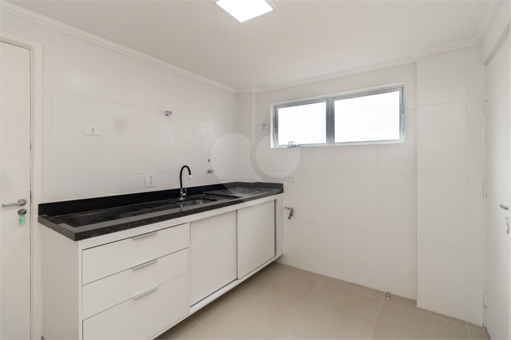 A cozinha também possui armários planejados e é integrada a uma área de serviço funcional.