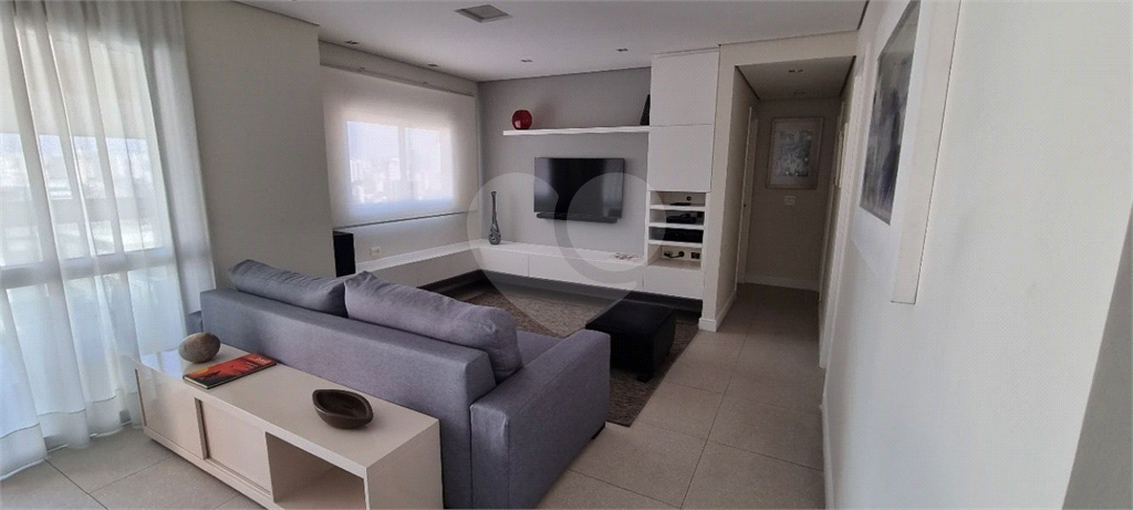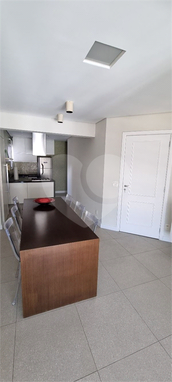 Planta original com 3 dorms, mas um deles foi integrado à sala, que é ampla, com cozinha gourmet e home theater e ampla varanda (maior em comparação as outras unidades). Tem 2 suítes, 1 lavabo, área de serv., despensa e banheiro de serviço. Tem 2 vagas e 1 depósito. Armários e estantes na sala, quartos, cozinha e despensa. Sala com sofá e mesa para 6 lugares. Suíte com cama e mesas de cabeceira. Eletrodomésticos (geladeira + fogão+ máquina de lavar + micro-ondas) e ar-condicionado.