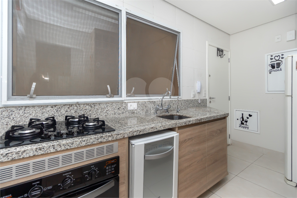 A cozinha é privativa e funcional, equipada com armários planejados, entrada de serviço edivisória que leva à lavanderia, garantindo organização e circulação independente. Na área íntima, o apartamento conta com duas suítes completas: A suíte principal tem ventilador de teto, mesas de cabeceira e um painel com estante iluminada por LEDs, além de um closet com armários planejados e banheiro completo. A segunda suíte, atualmente adaptada como escritório, possui armário, escrivaninha e estantes sob medida, além de banheiro completo.