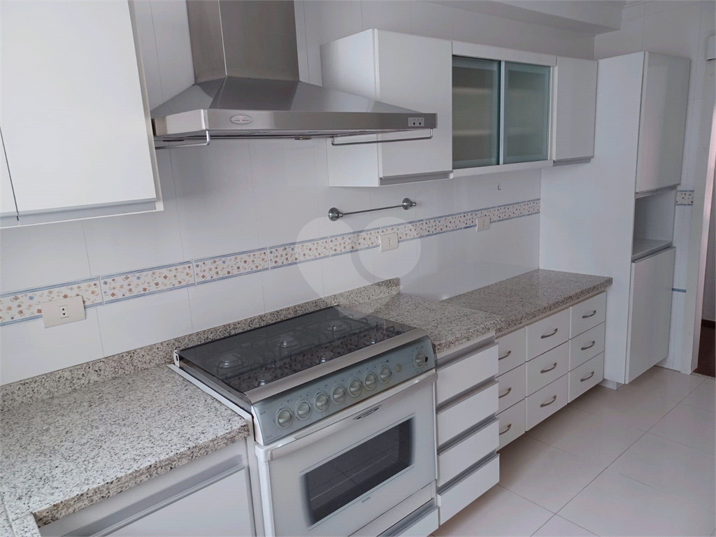 Cozinha com coifa e repleta de armários