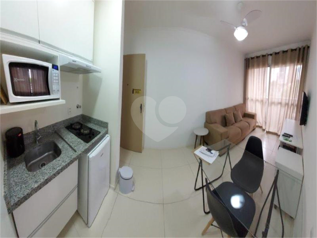 O apartamento está novinho, mobiliado e equipado, e será vendido assim. Posso afirmar com segurança que é um dos flats mais interessantes disponíveis para venda. A decoração segue o estilo industrial contemporâneo, preparada para receber confortavelmente duas pessoas. Há armários novos em todos os cômodos, garantindo excelente espaço de armazenamento.