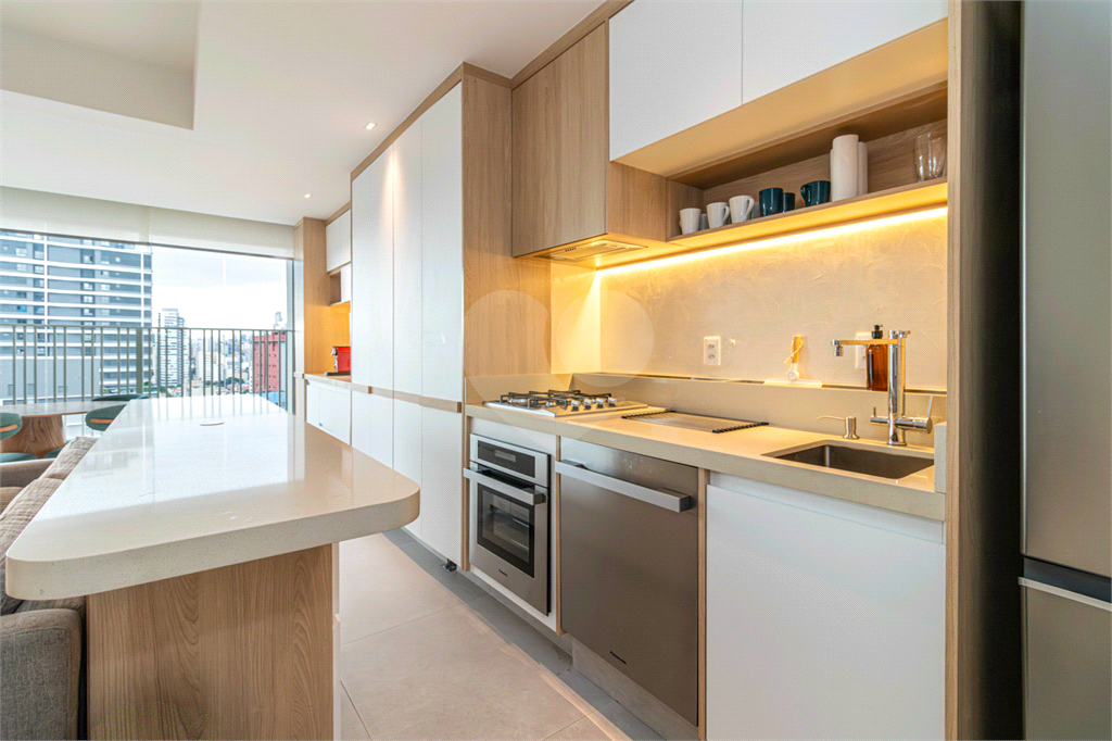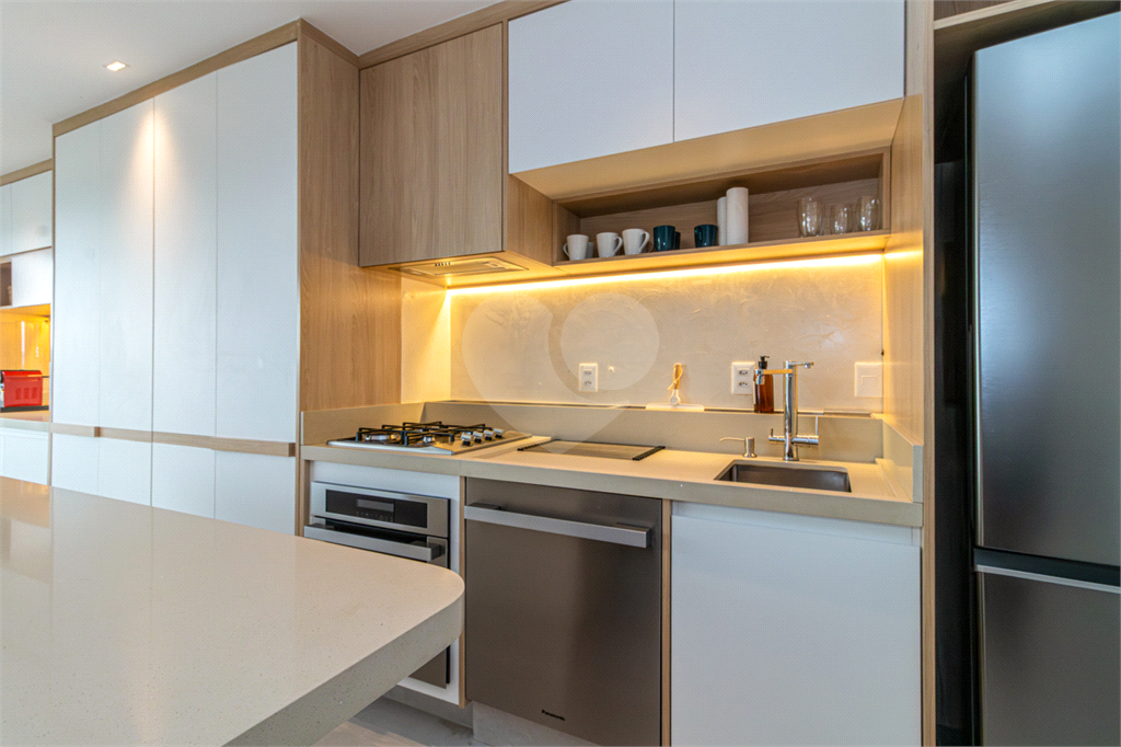 Cozinha planejada com eletrodomésticos embutidos, perfeita para quem gosta de cozinhar sem perder espaço ou estilo.