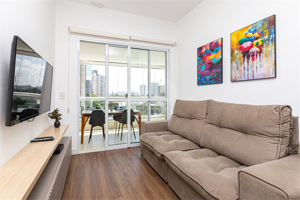 Apartamento mobiliado, impecável e pronto para encantar! A sala para dois ambientes se integra a uma excelente varanda, criando um espaço agradável para relaxar e receber. São 2 dormitórios, sendo 1 suíte, além de cozinha planejada que alia funcionalidade e bom gosto, e área de serviço bem ventilada. O imóvel conta ainda com eletrodomésticos, ar-condicionado, aquecimento a gás e 1 vaga de garagem.