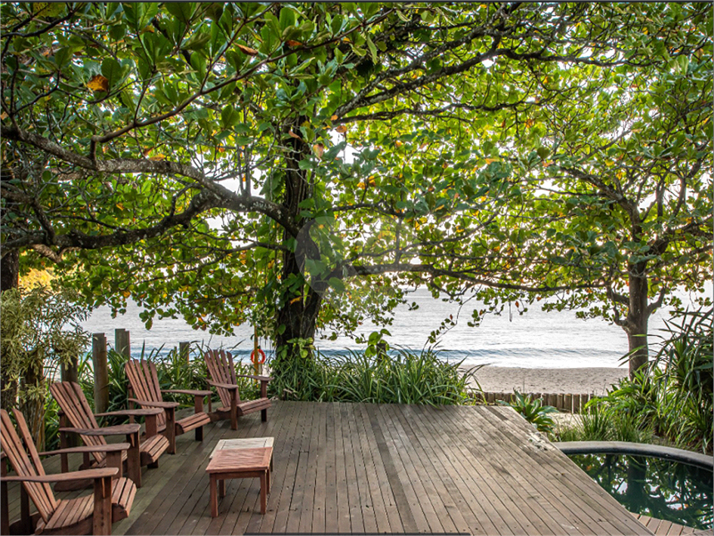 Sobrado em São Sebastião, projetada por Marcos Acayaba, a poucos metros do mar, natureza, muito verde, amplo living com passagem para varanda, piscina com hidro e deck em frente ao mar, amplos dormitórios sendo um suíte, grandes janelas, ar condicionado, sobrado fica suspensa por majestosos pilares de aroeira, não encosta no solo, proporcionando ótima ventilação em todo o sobrado. Uma boa opção para uso próprio ou investimento.