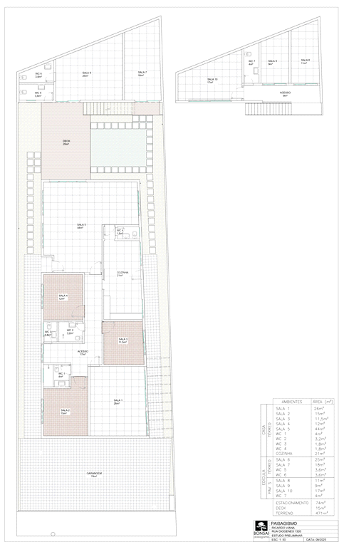 Projeto funcional com salas integradas ao jardim, ar condicionado individual. Possui copa e cozinha integradas, além de um amplo deck coberto nos fundos. Sistema de segurança robusto com 6 câmeras (acesso remoto), alarme e cerca elétrica. Layout versátil com dois interfones independentes, dividindo o imóvel em dois conjuntos de 5 salas cada. Ideal para clínicas, escritórios ou sedes corporativas que buscam visibilidade e bem-estar.