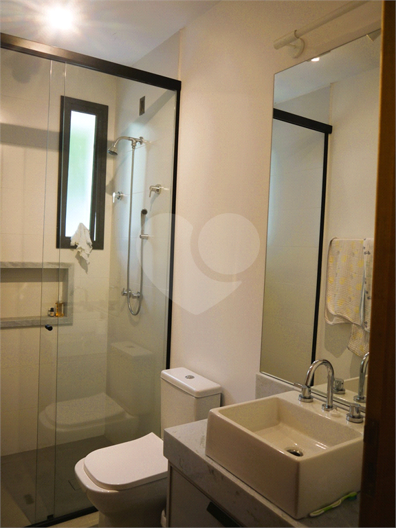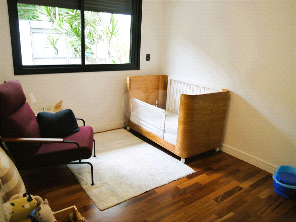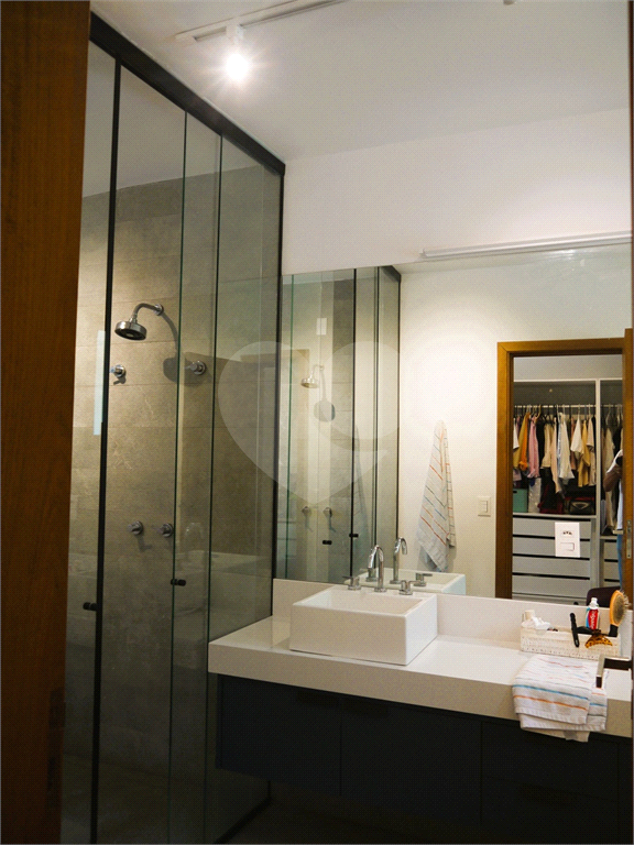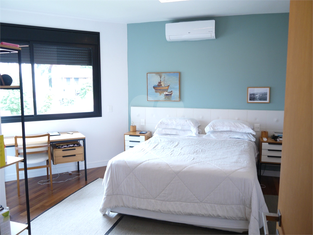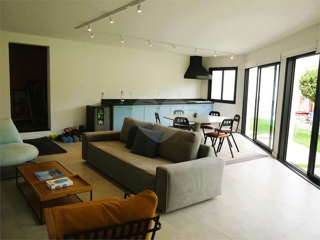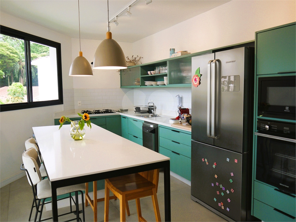 No pavimento principal em nível da rua, os ambientes sociais contam sala de estar, sala de jantar, lavabo, varanda integrada e cozinha com despensa, todos climatizados. Na área íntima conta com três suítes, sendo a suíte principal com closet, com muito conforto e privacidade. No pavimento inferior com acesso ao jardim com muito verde, tem um amplo salão coberto que possui área Gourmet, sala de estar, escritório, academia e lavabo, criando inúmeras possibilidades de uso. Garagem com quatro vagas, área de serviços e dependências de funcionários completa.