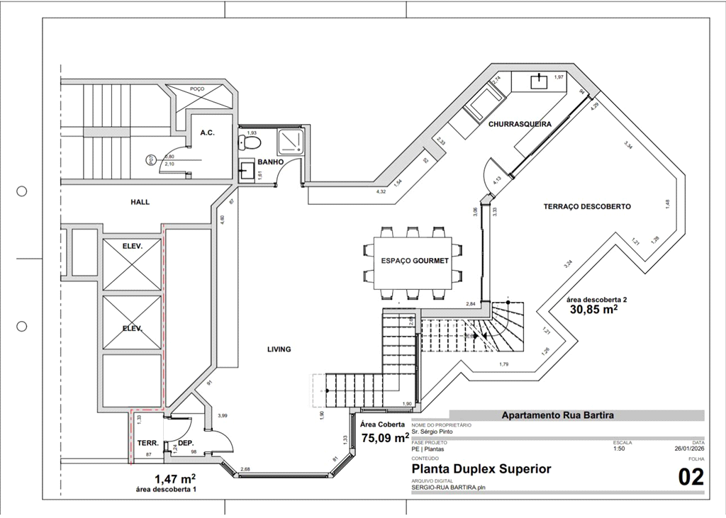 Cobertura triplex com 271m² total de área útil + 50m² (área extra) totalizando 321m² de área total; Apartamento totalmente reformado, inclui armários de primeira linha pronta em todos os cômodos e nas duas cozinhas, 3 vagas na garagem demarcadas e cobertas, Vista tombada 290 graus de São Paulo, mesma altura da Av Paulista umas das melhores vistas de Perdizes, Projeto assinado por arquiteta e decoradora renomada; com paisagismo e uma linda vista para cidade. Lavabo com vista panorâmica. Cozinha integrada com a sala de estar, Segundo andar: O andar do entretenimento. Uma ampla área externa para receber convidados, com sofás rústicos para ambiente externo e sonorização, na parte interna: Home Theater + mesa de jantar + baywindow com mesa para jogos + lavabo, um bar do chão ao teto com nichos espelhados que integra uma cozinha gourmet: churrasqueira elétrica americana Chair Broil com exaustor, uma mesa para baralho/ jogos, ambiente também conta com um banheiro/ lavabo com chuveiro no terceiro andar um Mirante. Com um amplo deck de madeira, Jacuzzi com aquecedor e hidromassagem. Piso em madeira em original Tauari (Pau Pau), personalizado e instalado em formato escama de peixe, Piso área externa: porcelanato 90x90 concretíssima da Portobello – cimento queimado; • Duas cozinhas, Portas acústicas (social e serviço) novas, ambas com fechadura digital biométrica e senha, Todos os ambientes possuem ar condicionado Fujitsu Inverter (mais silencioso); • Marcenaria nova + amplo closet casal na suíte, com iluminação independente no varão dos cabides.