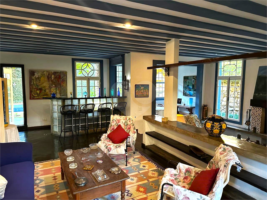 Com aproximadamente 600m² de área construída, esta bela Propriedade revela, logo na entrada, uma atmosfera que remete a uma casa de campo ou a uma pousada de charme. Não há excessos, há identidade. Os ambientes são marcados por materiais naturais, texturas e uma composição que valoriza o tempo: madeira, pedra, tecidos e cores que aquecem e acolhem. A área social se distribui em três salas, incluindo estar com lareira tradicional, criando um espaço convidativo para encontros e momentos mais íntimos. A integração com o bar e os demais ambientes reforça o caráter de convivência da casa. São 4 suítes, todas com boa proporção, além de 5 banheiros no total, incluindo lavabo. A casa conta ainda com 3 vagas de garagem.