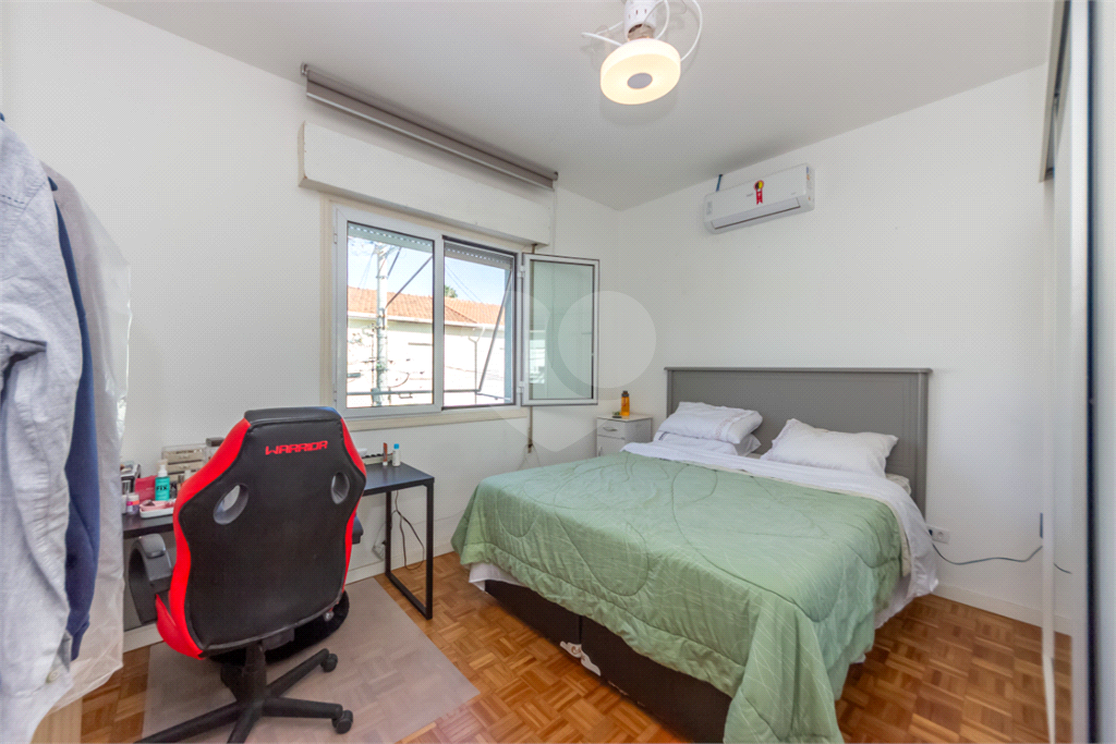 No primeiro andar fica a área íntima, composta por dois amplos dormitórios, ambos com janelas antirruído e ar-condicionado. Um espaçoso banheiro serve aos quartos.