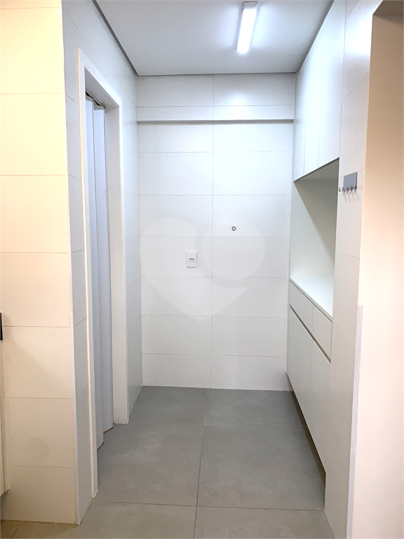 Cozinha com móveis planejados, área de serviço clara e arejada, aquecedor à gás.