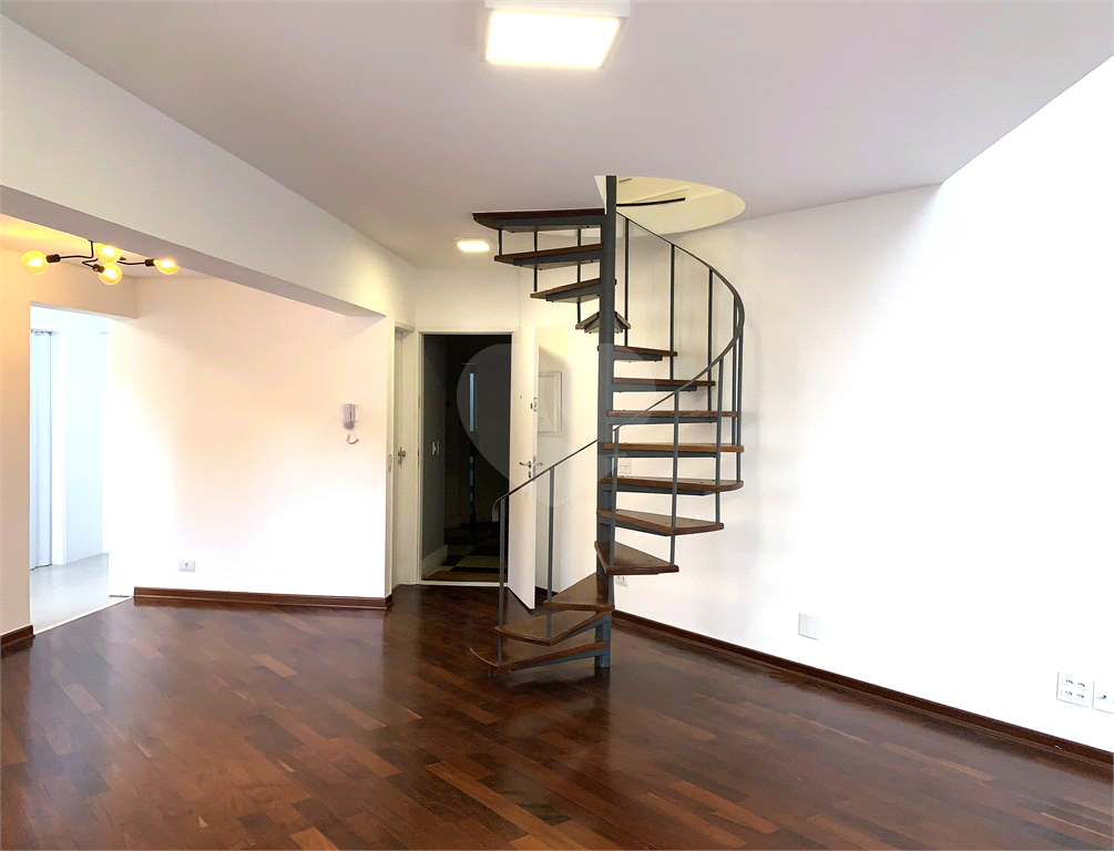 Apartamento duplex de 94 m² com 2 quartos sendo 1 suíte, sala para 2 ambientes com varanda, ar condicionado, 2 banheiros, 1 vaga de garagem.