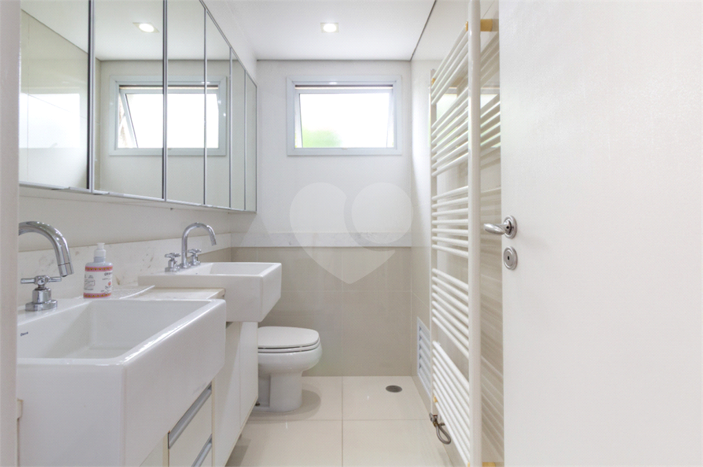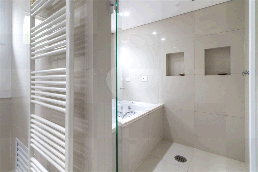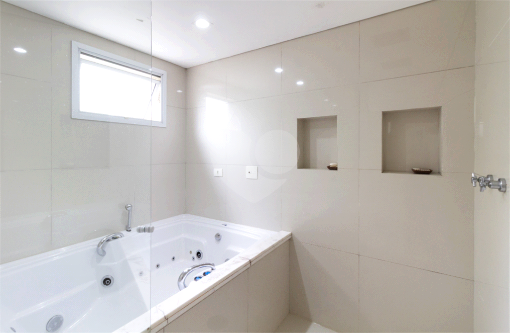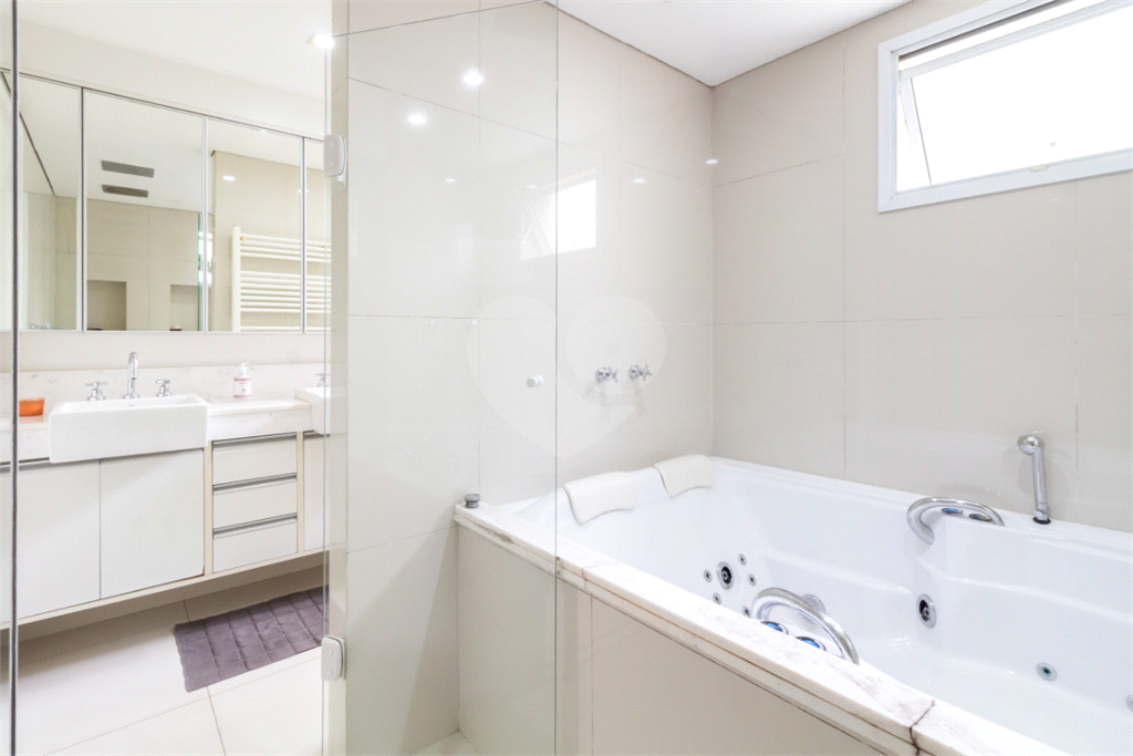 A suíte master é um verdadeiro refúgio particular: sala de banho com pia separada da área de banho, jacuzzi relaxante e dois chuveiros no teto, criando um ambiente digno de spa para momentos únicos de relaxamento.