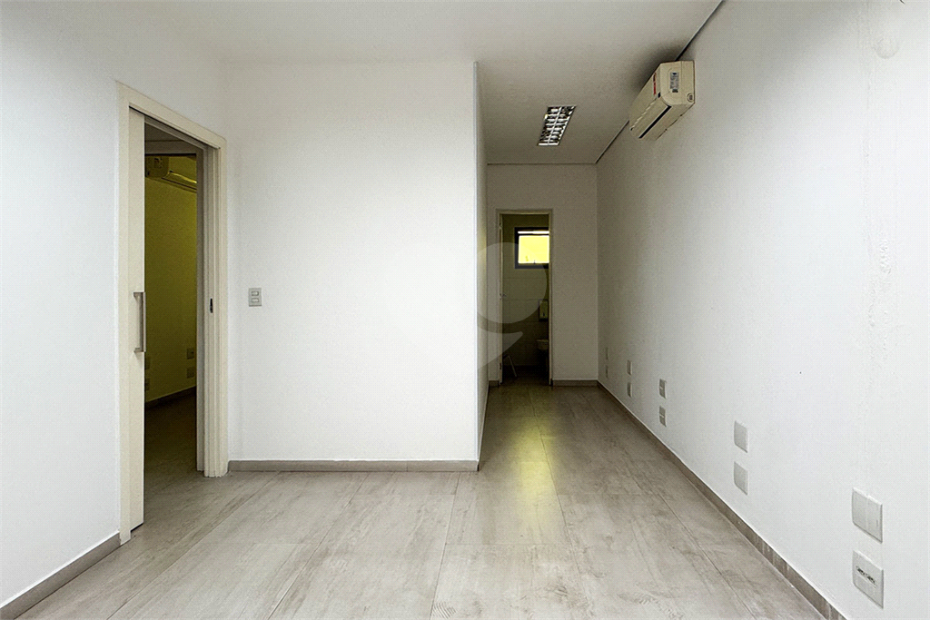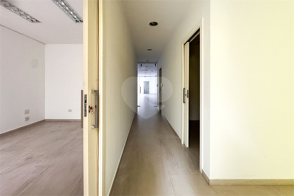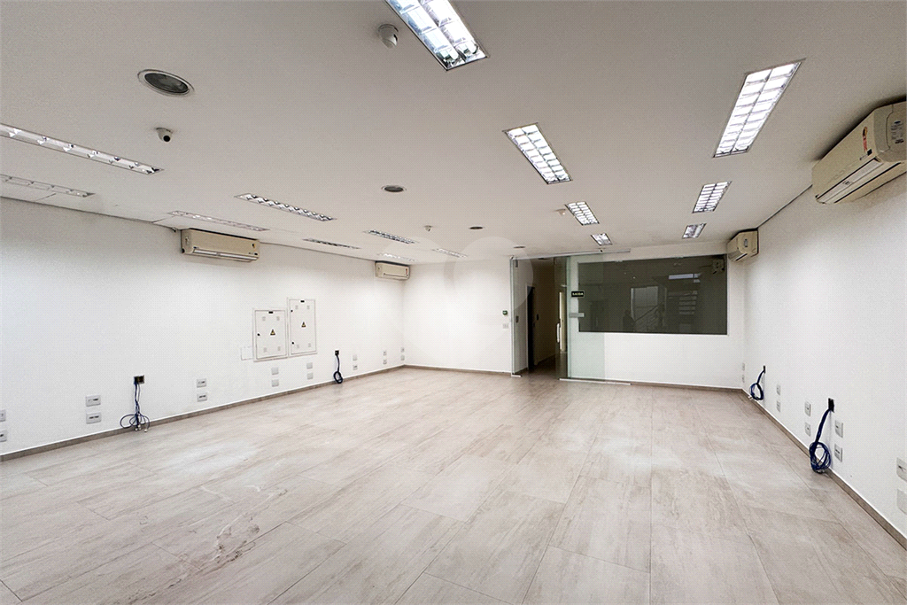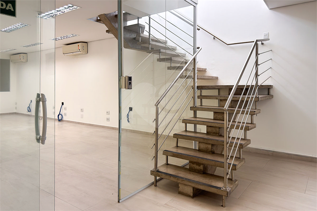 No 1º andar, quatro salas com ar-condicionado — duas delas com banheiros privativos — além de sala de TI e outro grande salão com dois banheiros e acesso pelo elevador.
