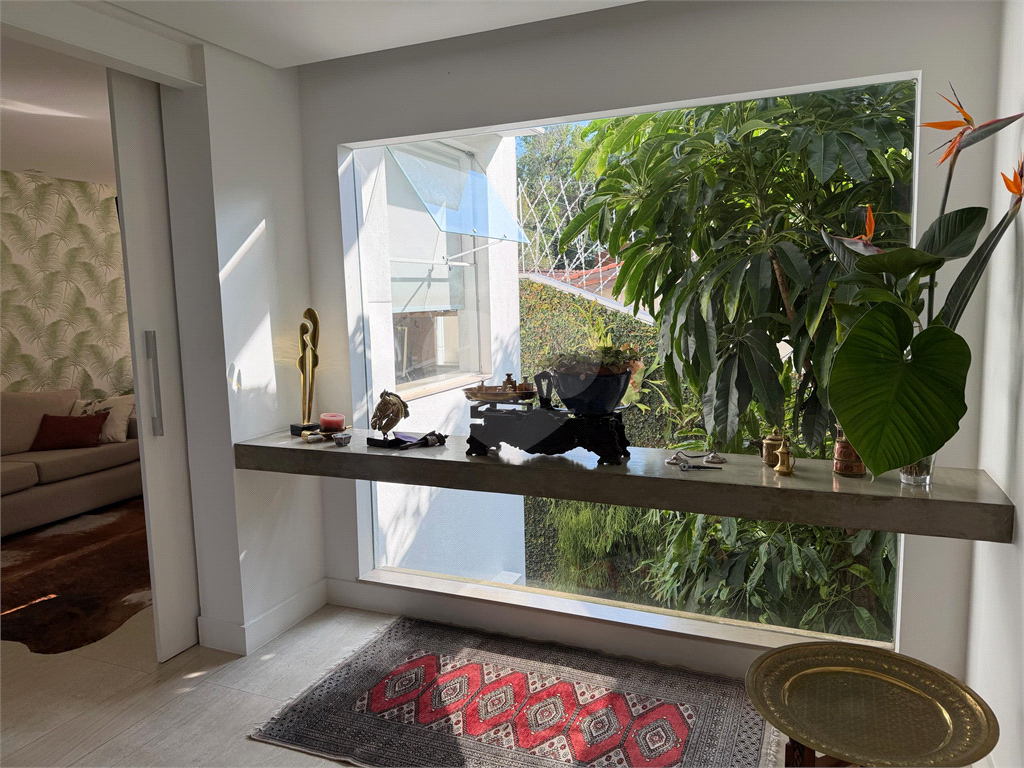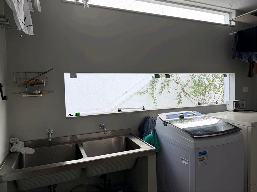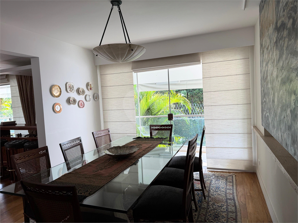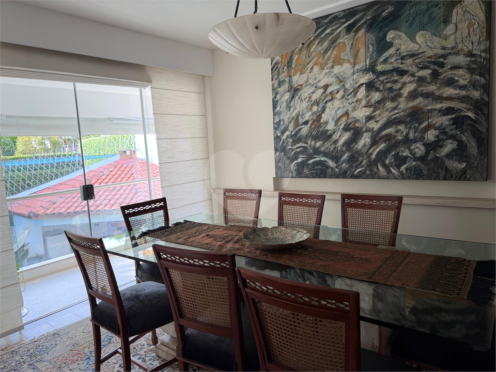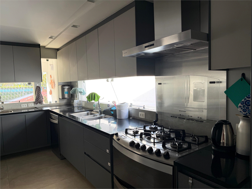 No térreo, sala de TV, chapeleira, sala de estar com varanda, bar completo, sala de jantar com varanda, ambientes com ar condicionado, cozinha, copa, lavanderia e dependência para funcionários com dois quartos e um banheiro no corpo da casa. Gás de cilindro e sistema de energia solar fotovoltaica.