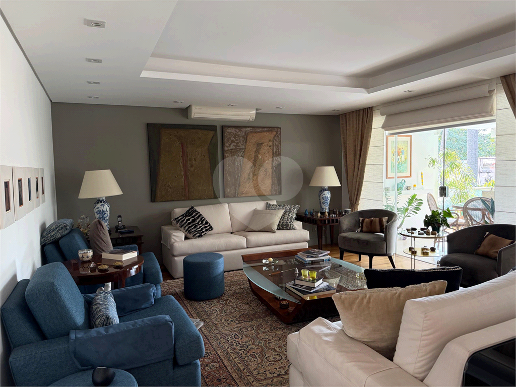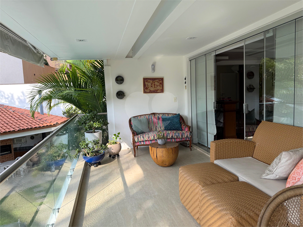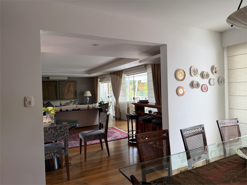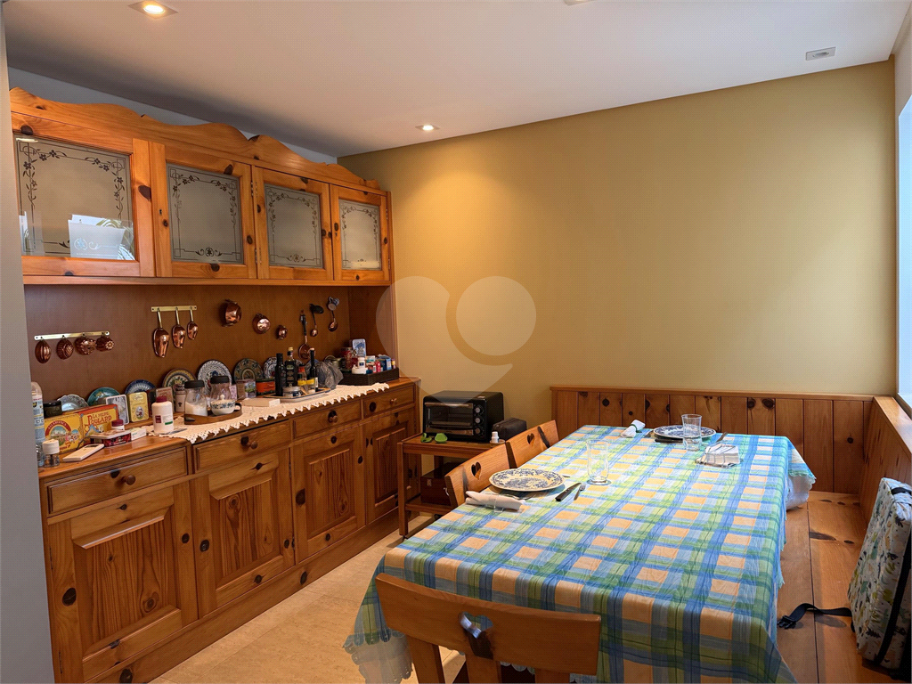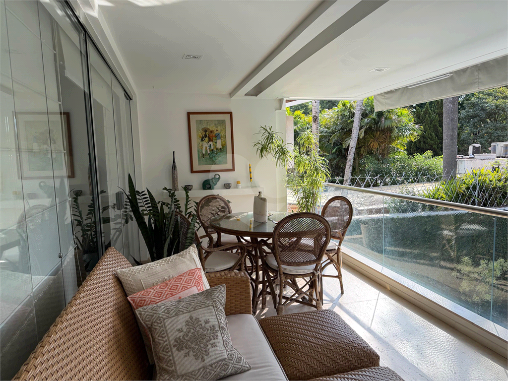 No térreo, sala de TV, chapeleira, sala de estar com varanda, bar completo, sala de jantar com varanda, ambientes com ar condicionado, cozinha, copa, lavanderia e dependência para funcionários com dois quartos e um banheiro no corpo da casa. Gás de cilindro e sistema de energia solar fotovoltaica.