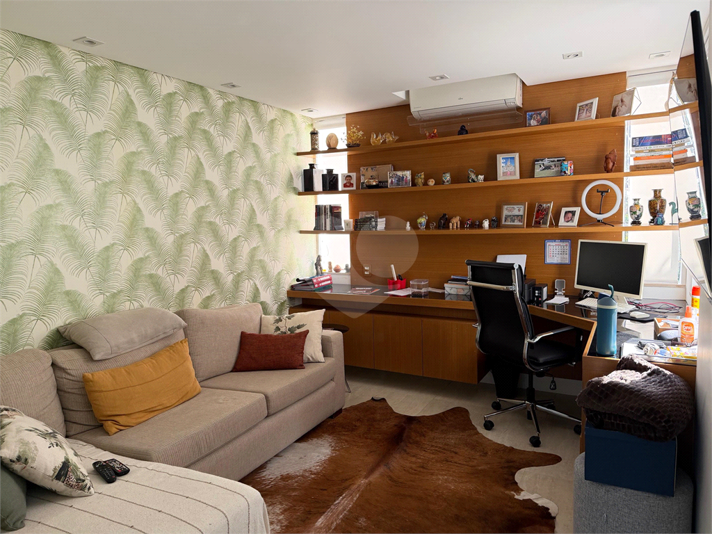 A área íntima dispõe de 2 suítes, sendo a suíte master com closet, banheiro com chuveiro e banheira separados, sapateira, rouparia, além de 1 suíte americana (dois dormitórios com ventilador de teto, banheiro compartilhado). Todos os quartos possuem armários de primeira linha, ar-condicionado nas suítes, sala de TV, adega, um pequeno e prático elevador de carga.