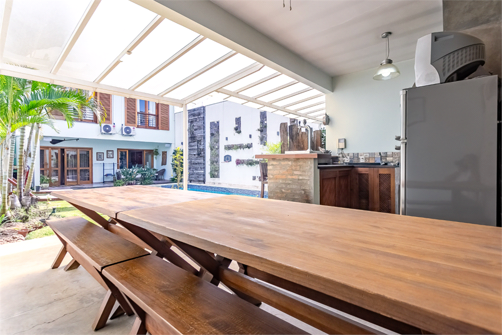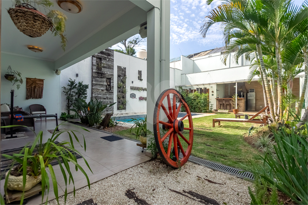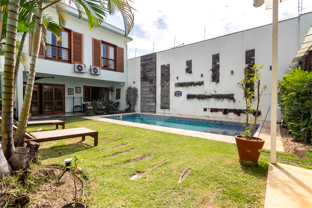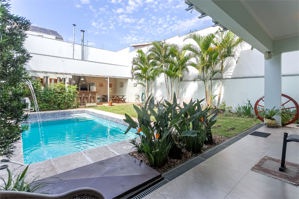Pensada para quem valoriza o convívio, a ampla área externa é um convite ao lazer, apresentando uma piscina aquecida, vestiário com dois chuveiros, depósito e um espaço gourmet completo com churrasqueira e forno de pizza, tudo rodeado por um jardim planejado com espaço para mesas e plantas.