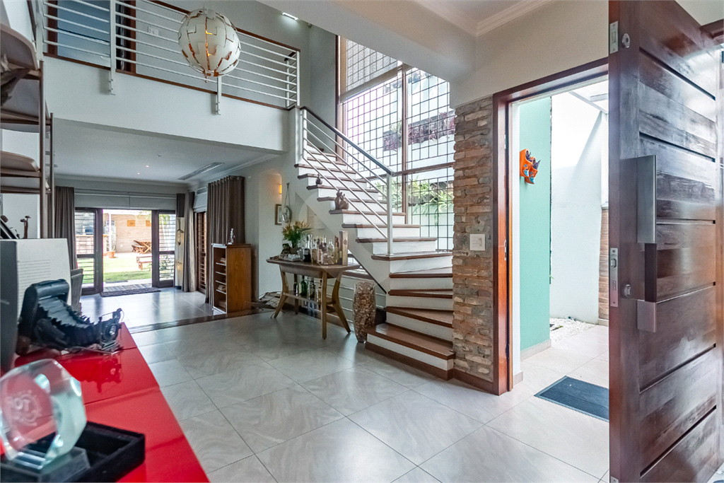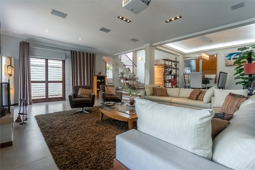 O acesso à garagem conta com dois portões automáticos que formam uma área de clausura, garantindo máxima segurança no acesso a mesma. O espaço acomoda confortavelmente seis veículos, conta com ampla área para dispensa e possui acesso direto a casa.