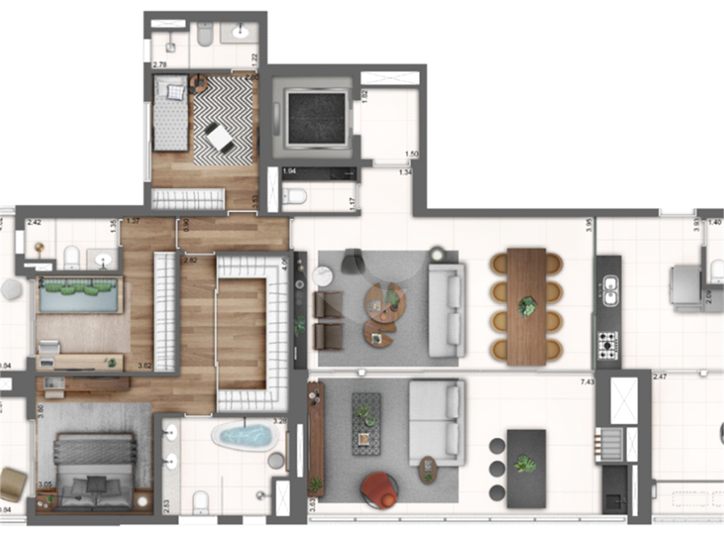 Apartamento com 4 suítes.